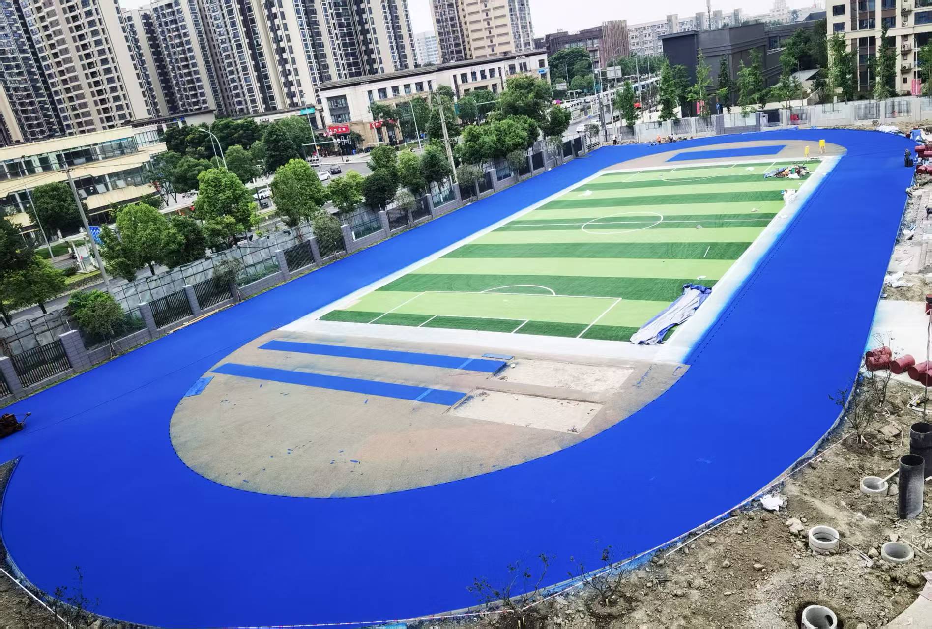 2025年6月8号,我公司中标的成都市郫都区蜀信小学200米运动场、港泰小学300米运动场施工中